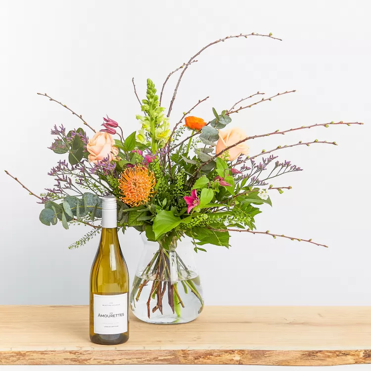 Sig god påske og overrask modtageren med en smuk påskebuket og en god hvidvin. Blomsterne i buketten kan variere alt efter sortimentet hos den enkelte florist. Ekskl. vase.